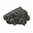 Harley Davidson Sportster Black Leather Saddlebag "Vintage" with bottle holder