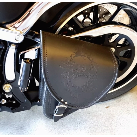 Harley Davidson Softail - Black Leather Swingarm Saddlebag Skull