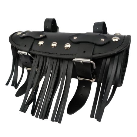 Leather Tool Roll / Saddlebag with Fringes, Motorcycle - Black