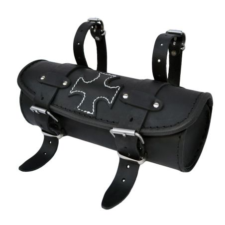 Leather Tool Roll / Saddlebag Motorcycle - Black with Maltese Cross.