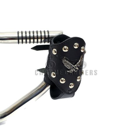 MOTORCYCLE BIKER CUSTOM LEATHER DRINK HOLDER WITH EAGLE EMBLEM / RIVETS