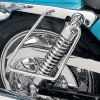 - Chrome-plated steel brackets hold throw-over saddlebags away from brake caliper and swingarm.