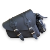 Harley Davidson Sportster - Black Leather Saddlebag with bottle holder - Flame